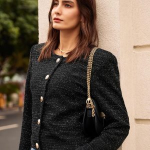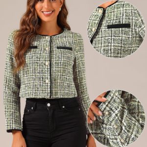 Tweed Blazer Jackets for Women Long Sleeve Elegant Office Work Business Casual Cropped Tweed Jacket