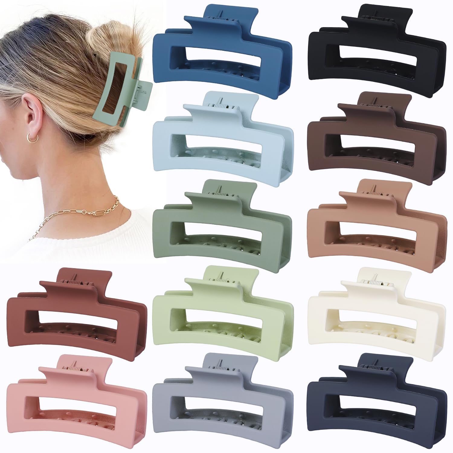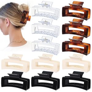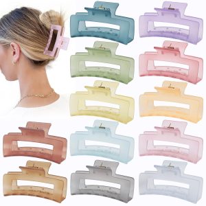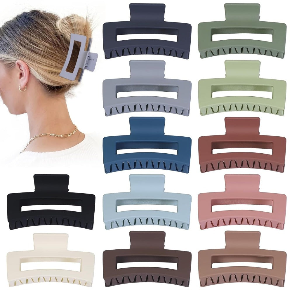 12 Pcs Medium Hair Clips, 3.5 Inch, Colorful – Hair Clips for Thick and Thin Hair, Square Claw Clips, Jaw Clips, Bulk Hair Accessories for Women and Girls