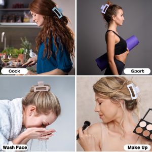 High Quality: These hair claw clips are made of high-quality rubber paint and plastic materials, strong metal springs. Comfortable matte texture and Acrylic quality and Non- Slip design.