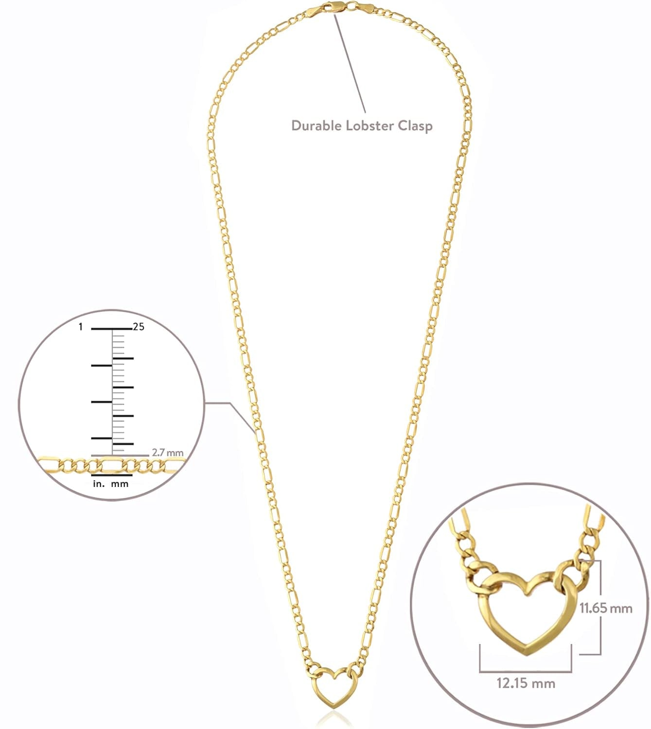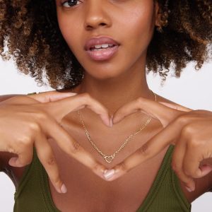 This solid 14K heart chain necklace is 2.7mm wide and 18 inches long