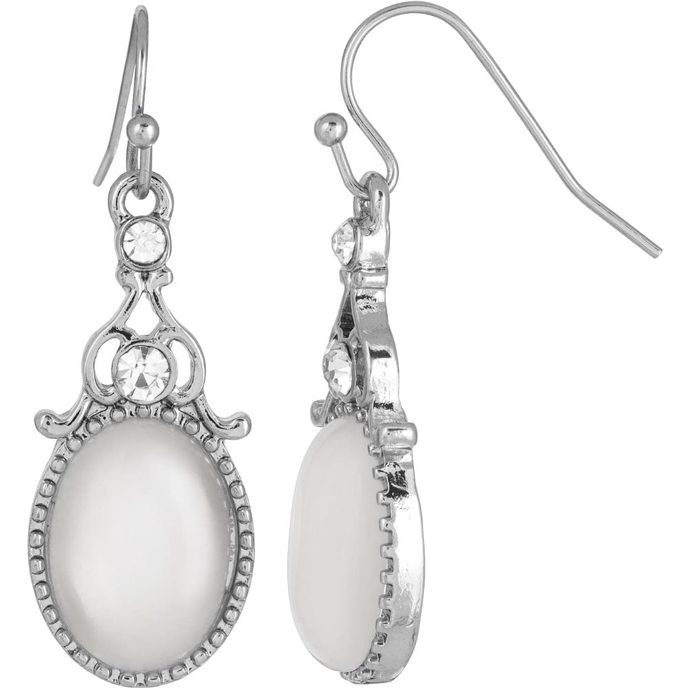 Crystal and White Cat’s Eye Oval Drop Earrings