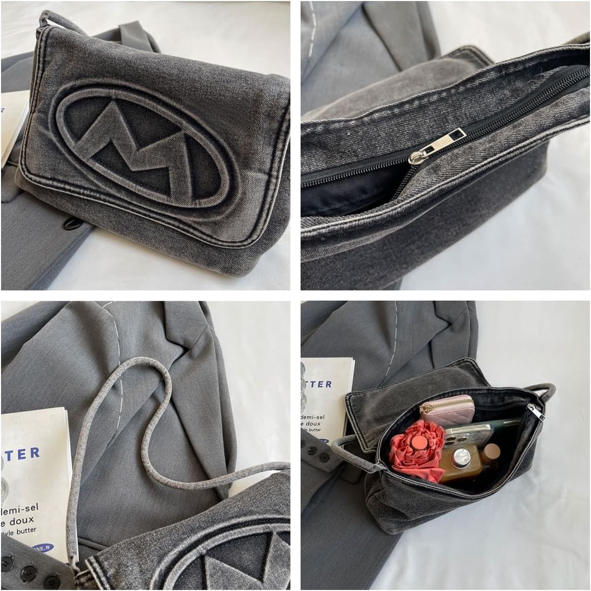 【Material】—Jean shoulder bag is made of high quailty denim fabric material, polyester lining.