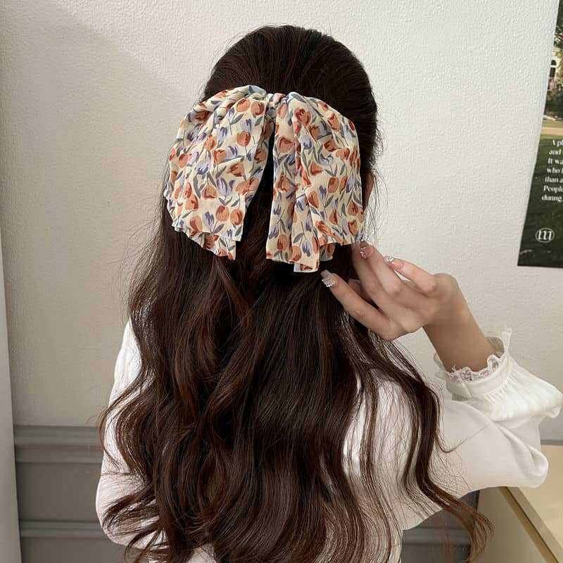 French Floral Girl Forest Style Back Head Clip Tulip Simple Big Bow Spring Clip Elegant Pastoral Hairpin Female