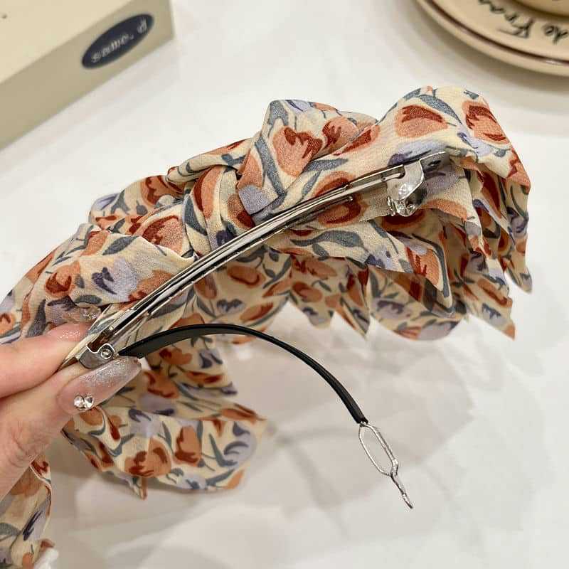 Color: Brown floral bow spring clip