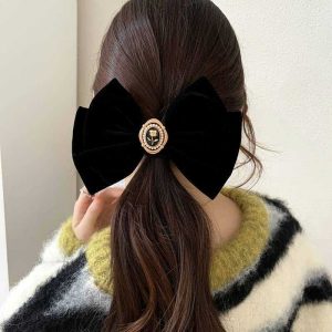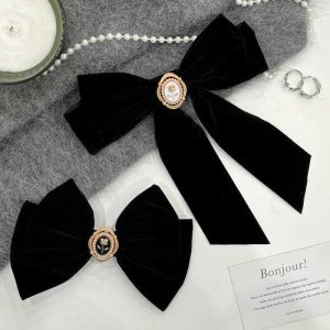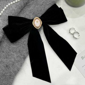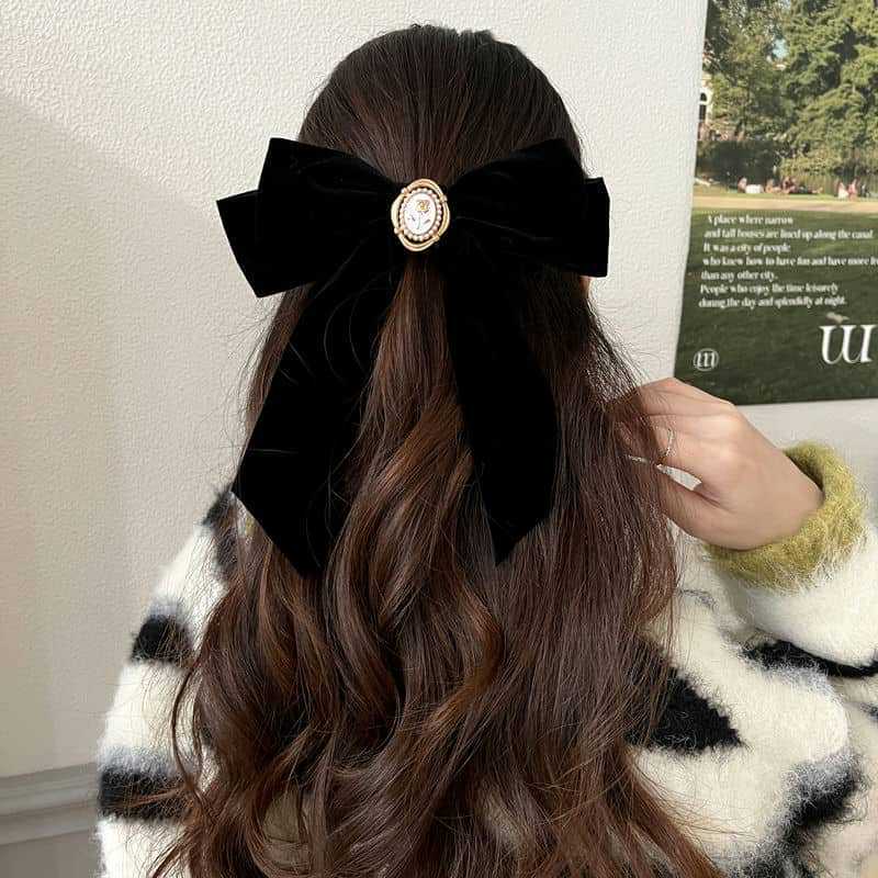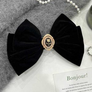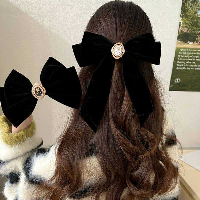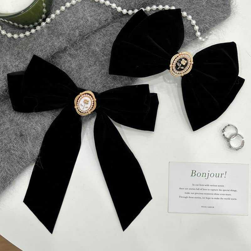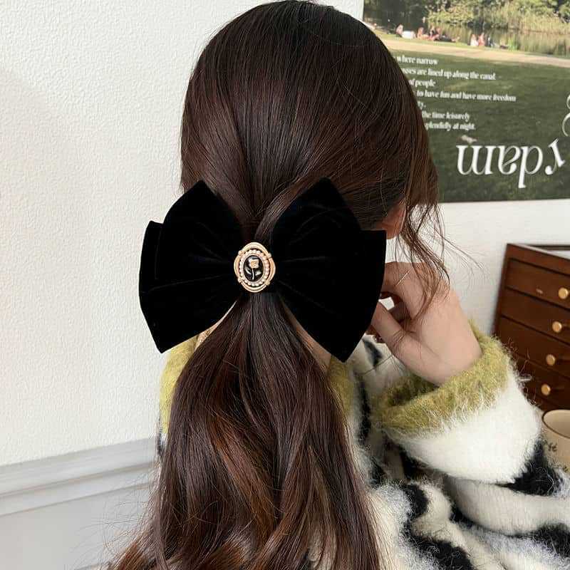 French Rose Black Velvet Bow Hairpin Female High-grade Retro Small Fragrance Style Hairpin Large Hair Accessories Headdress