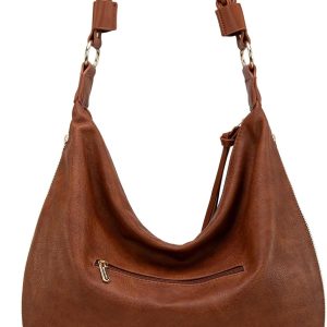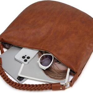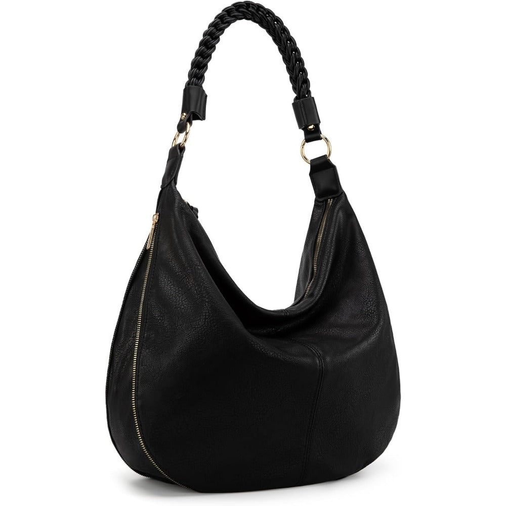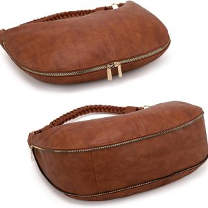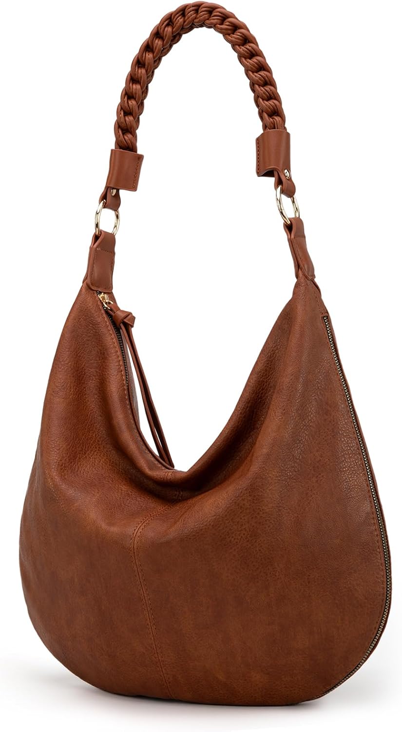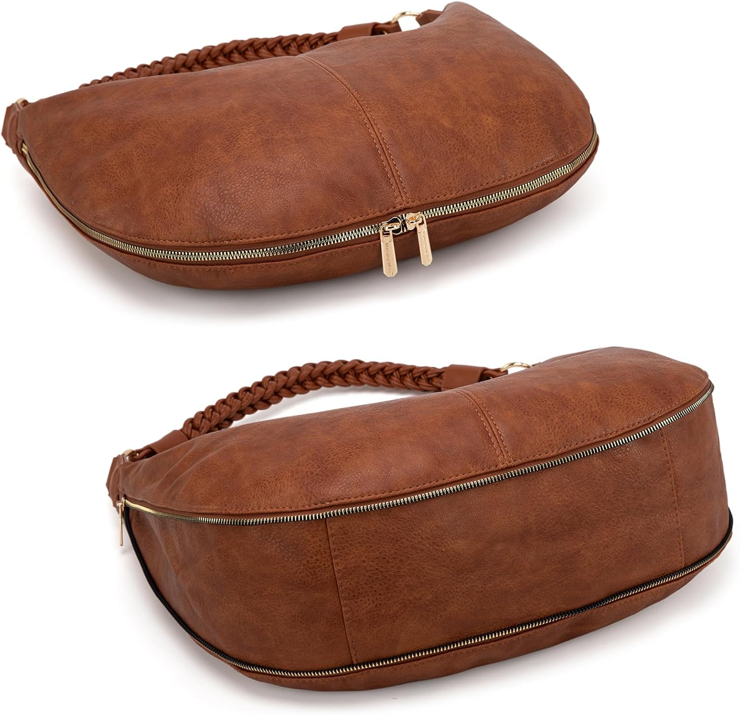 Hobo Bags for Women Large Slouchy Tote Bag PU Leather Hobo Purse with Zipper and Woven Handle