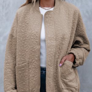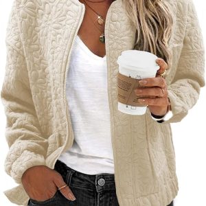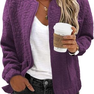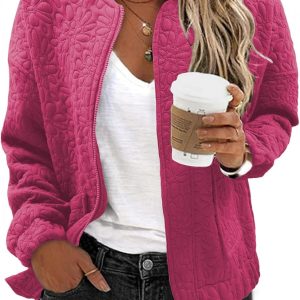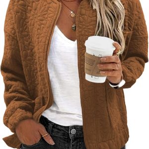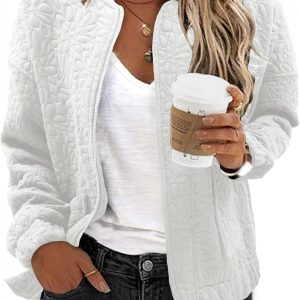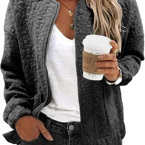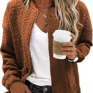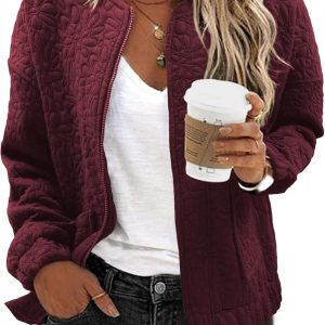 WOMENS FASHION 2024: The lightweight casual jackets for women are designed with a chic jacquard texture, long sleeves, zip up, stand collar, utility pockets, and a loose boyfriend-style coat. This casual outerwear is suitable for cold weather and should be the top pick for your perfect wardrobe.
