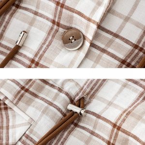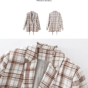 Long Sleeve, Padded Shoulder, Flap Pockets, Plaid Blazer, Single Front Button Design, Work Suit Jacket