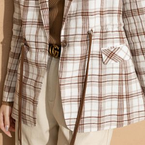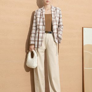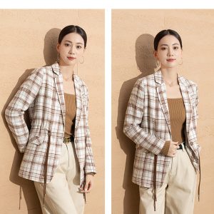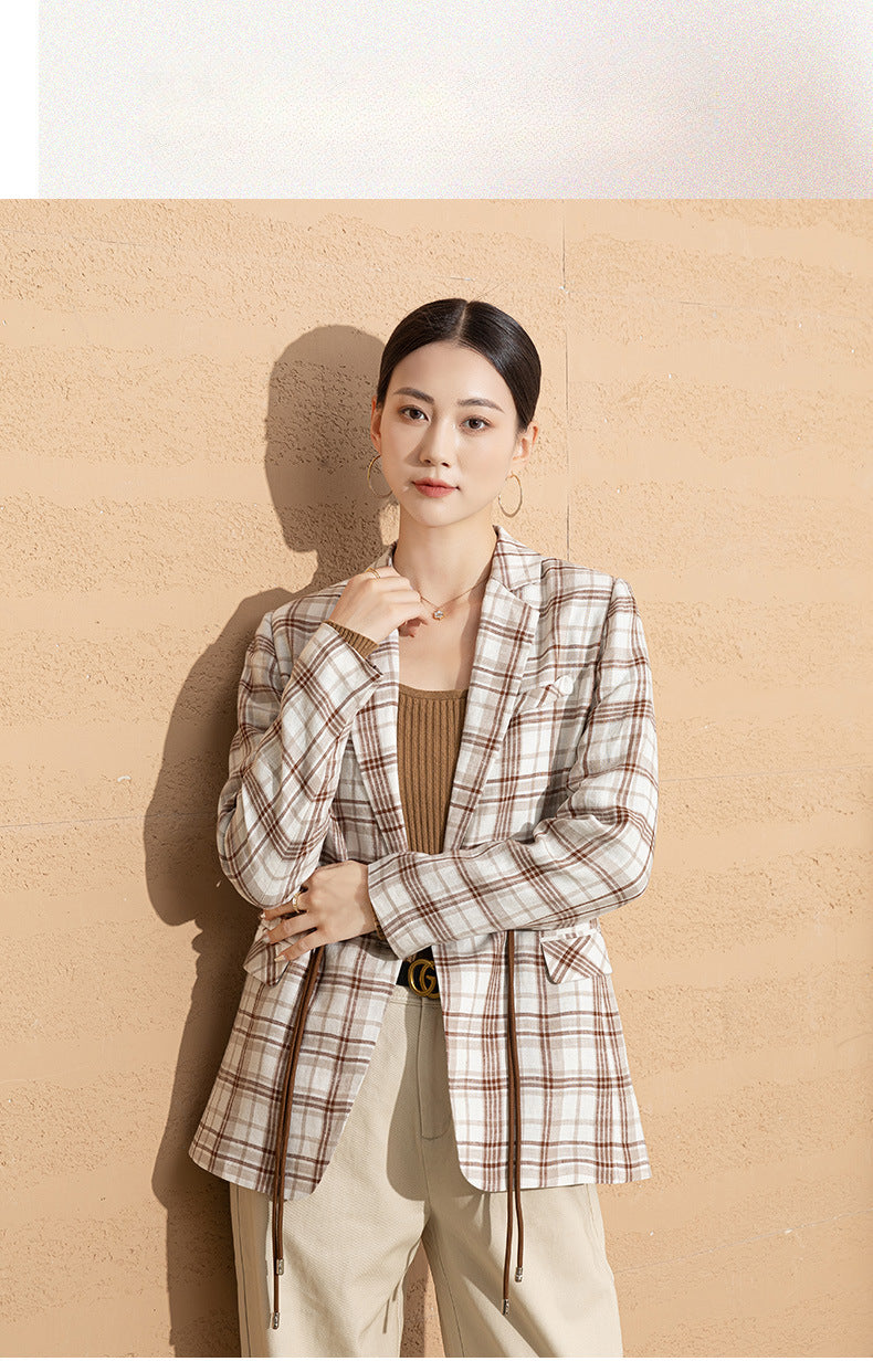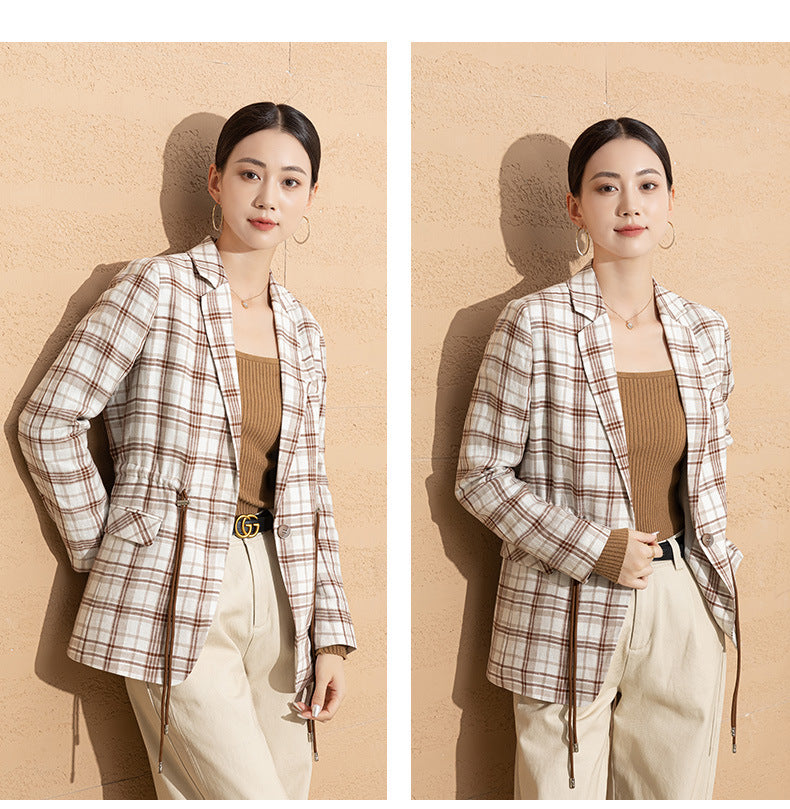 Linen plaid suit jacket for women in spring 2024, new niche design, high-end small casual suit