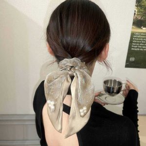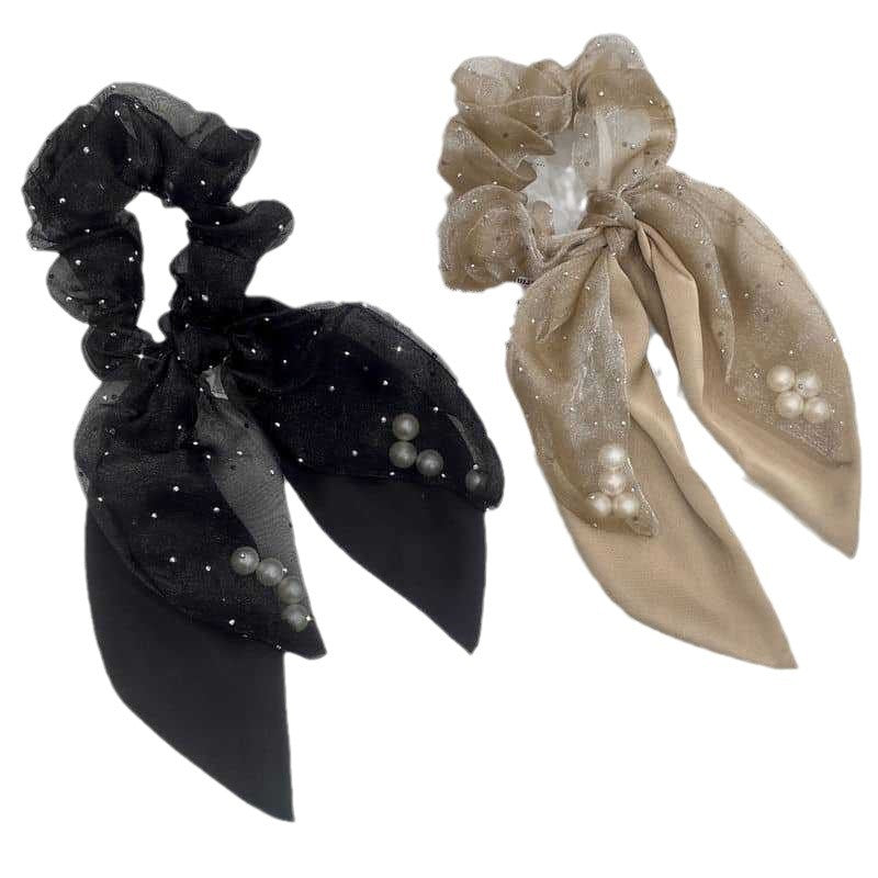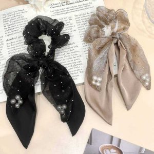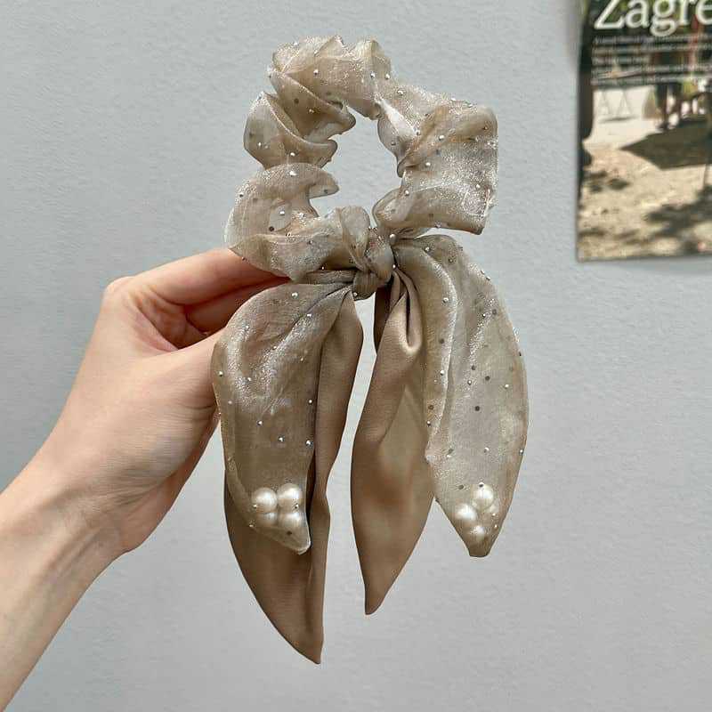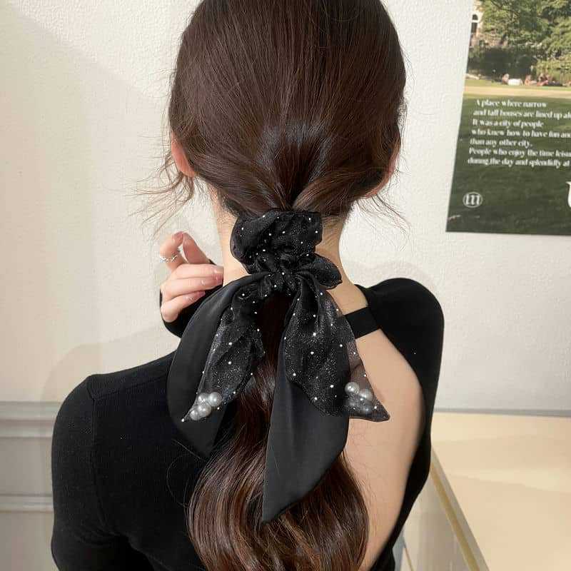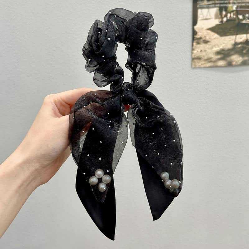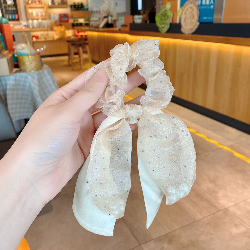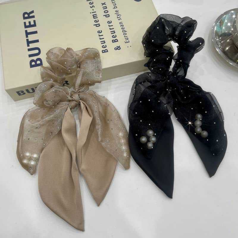 Organza Pearl Ribbon Headband Large Intestine Hair Ring Girl Temperament Ponytail Hairband Leather Headdress