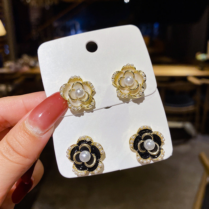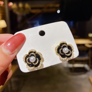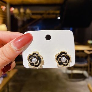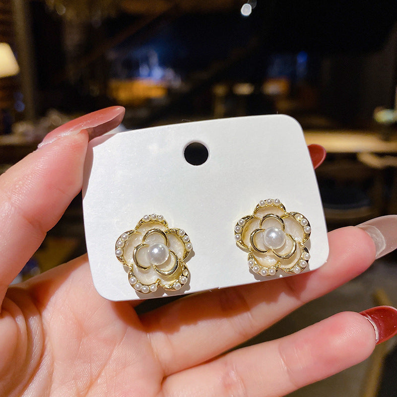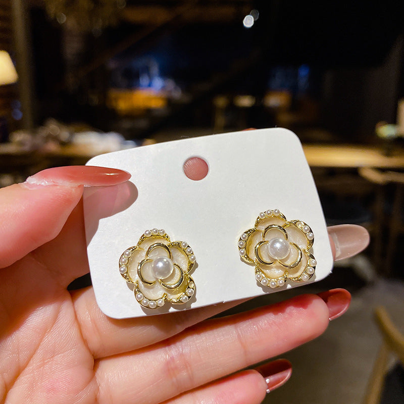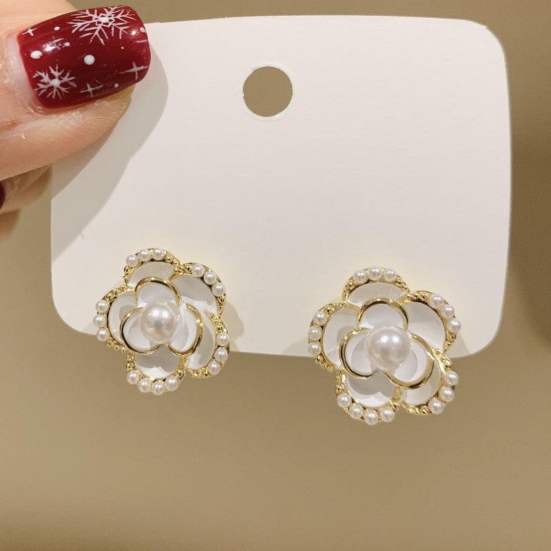 S925 Silver Needle French Camellia Flower Earrings Vintage Earrings