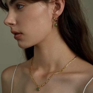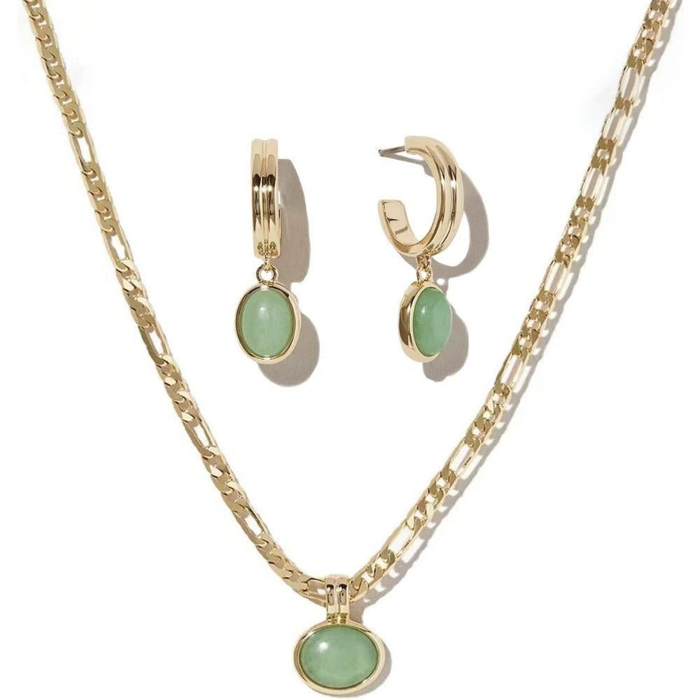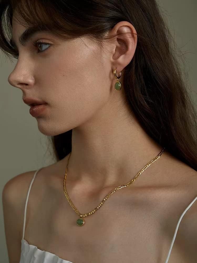 This gorgeous jewelry set includs hoop Jade earrings and Gold jade necklace, definitely brighten your everyday look.