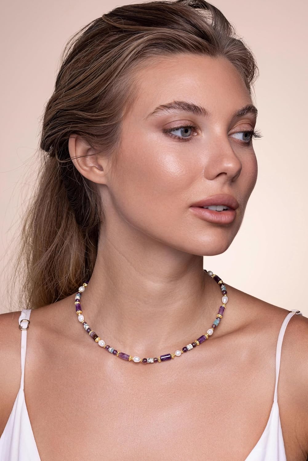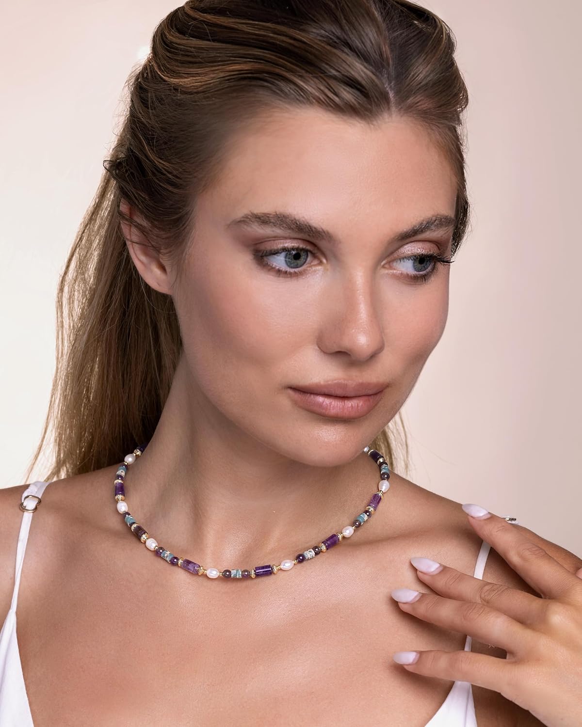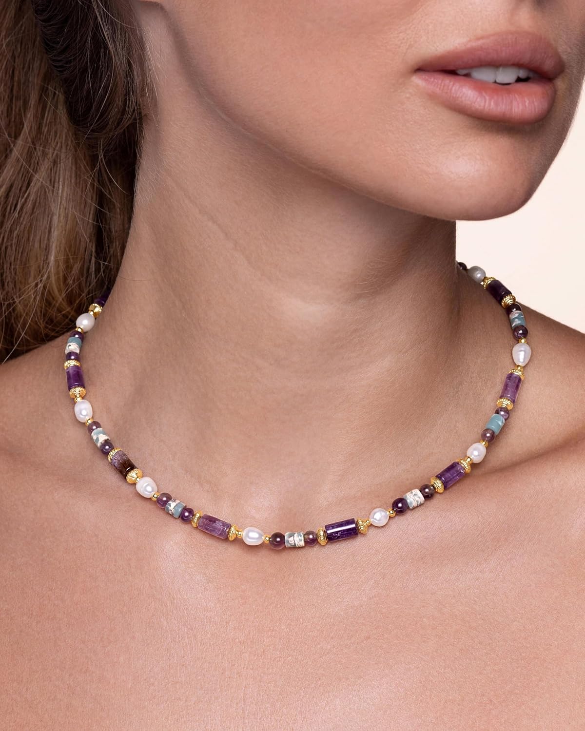 Unique and Trendy; Up your jewelry collection with these gorgeous purple turquoise amethyst natrual stone prom necklace choker. These beaded necklace is designed with a variety of beads metal textures that cross each other for the perfect combination and they are a must have for the trendy individual. Wear them daily or special occasions, vacation, wedding. Perfect for the beach, festival and birthday mother’s day daughter gift!
