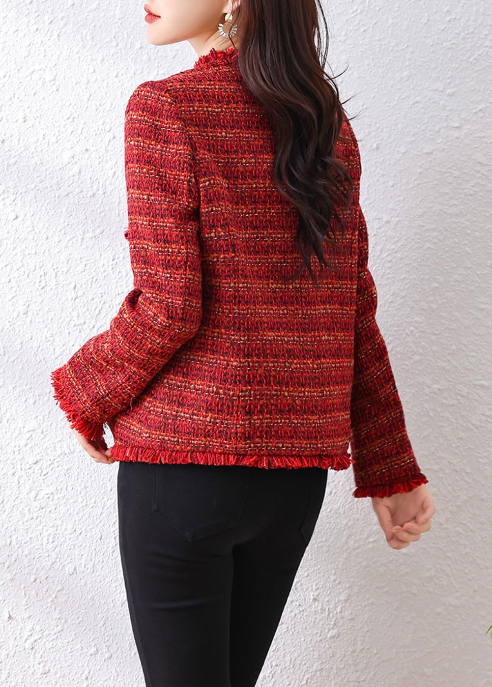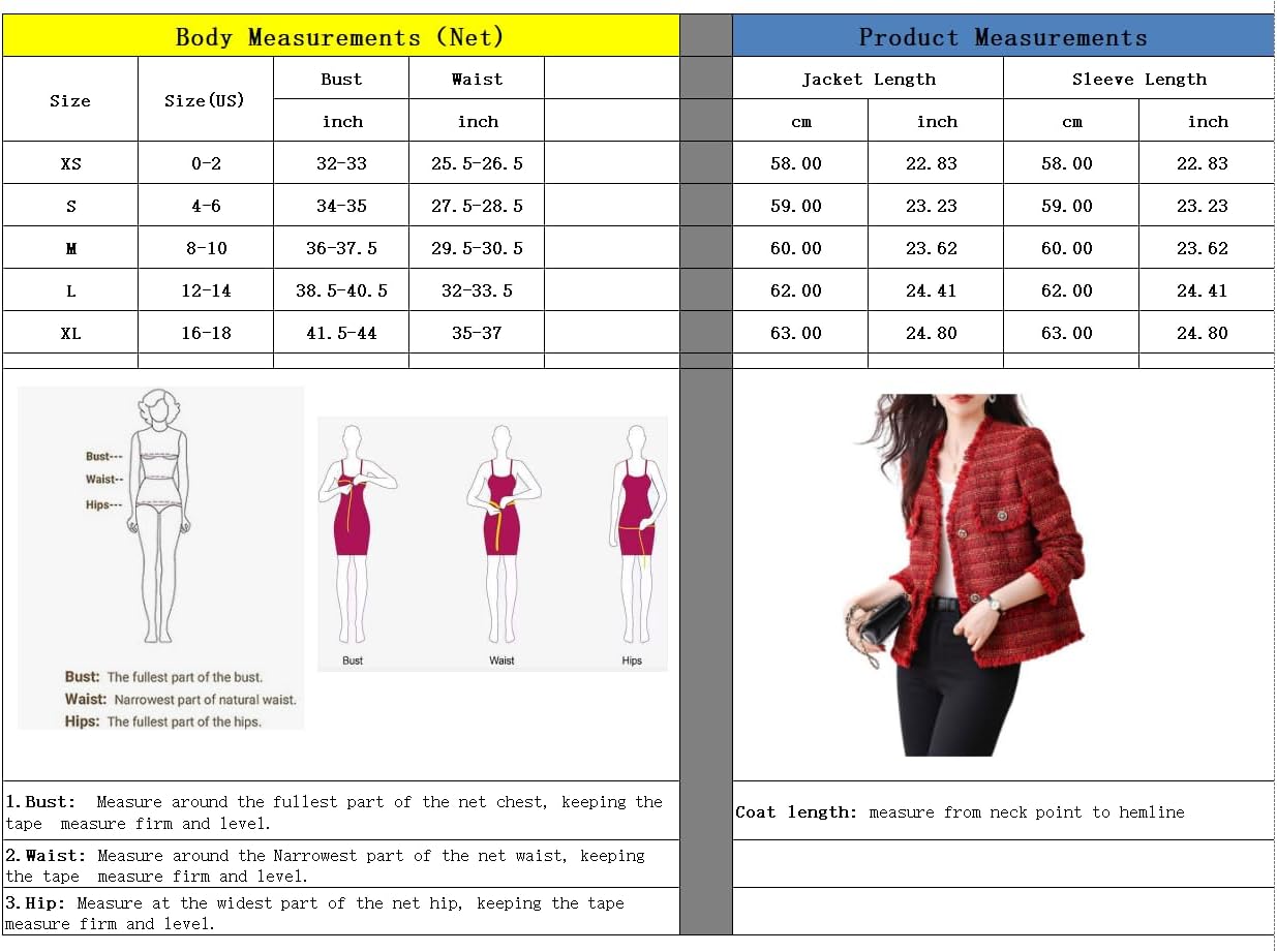 Easy to match: This trendy tweed jacket is perfect to be matched with sweater, t shirt, skinny pants, jeans, skirt, dress, heels, etc. Good addition to your wardrobe!Flattering and charming to wear!