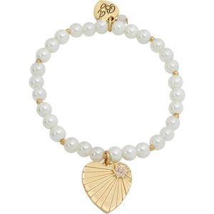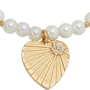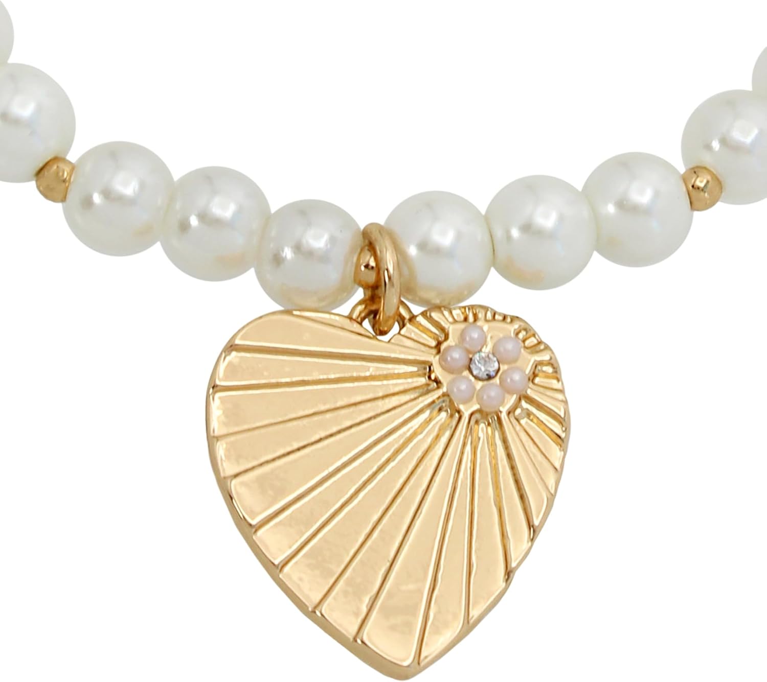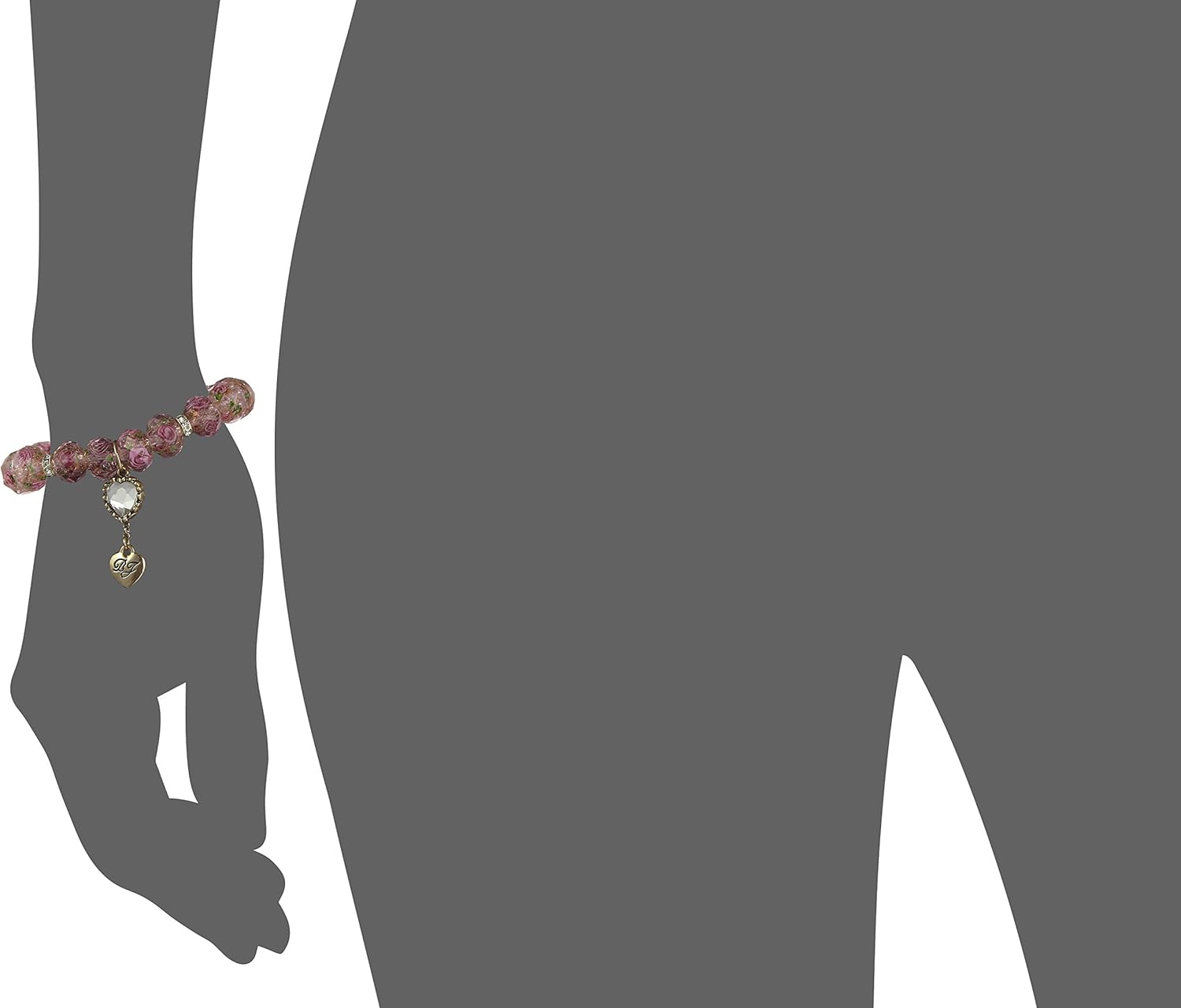 TRENDY BRACELETS : This easy stretch bracelet features colorful pink faceted beads adorned with delicate floral details and small crystal stone heart charm accent. Hand crafted from polished gold-tone metal and glass.