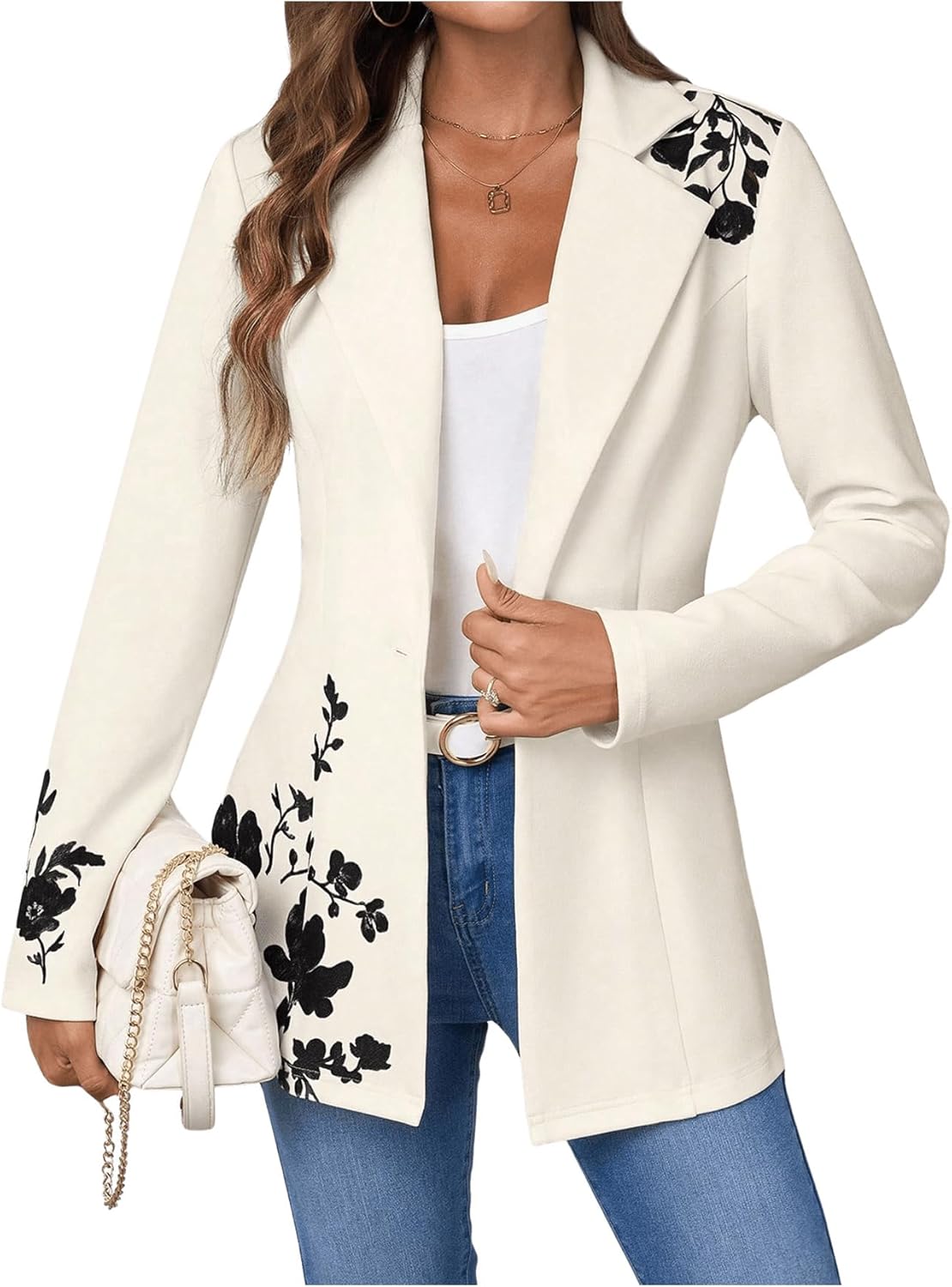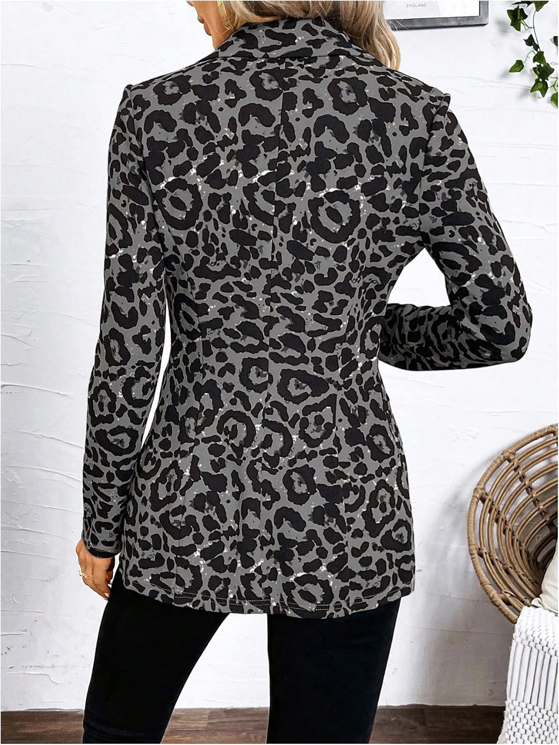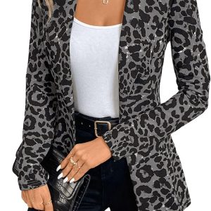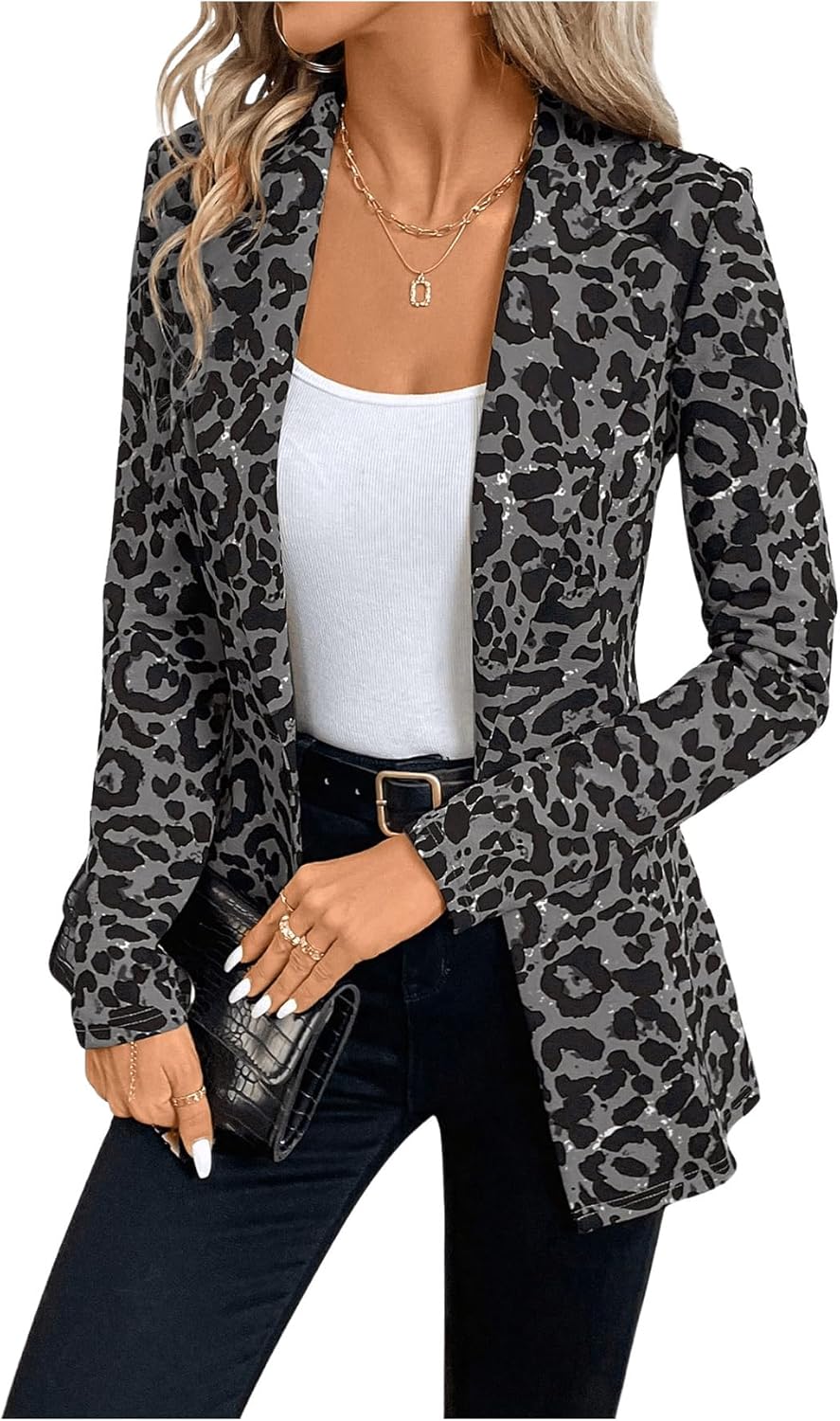 Women’s Houndstooth Blazer Jacket Button Down Long Sleeve Work Casual Blazer