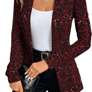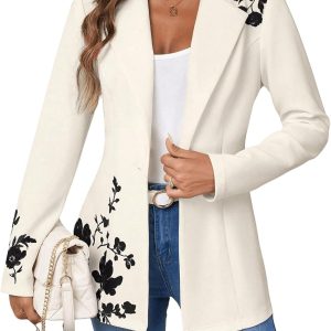 Womens Tweed Blazers Casual Long Sleeve Double Breasted Open Front Blazer Jackets Work Suits