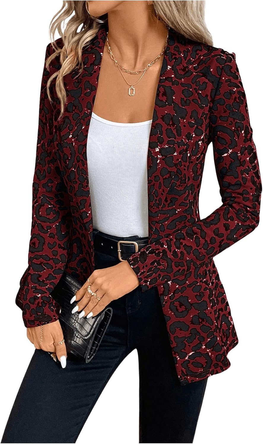 Features: button front, long sleeve, lapel collar, houndstooth office suit blazers for women