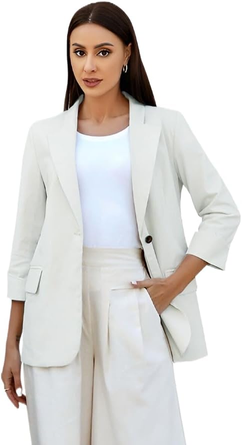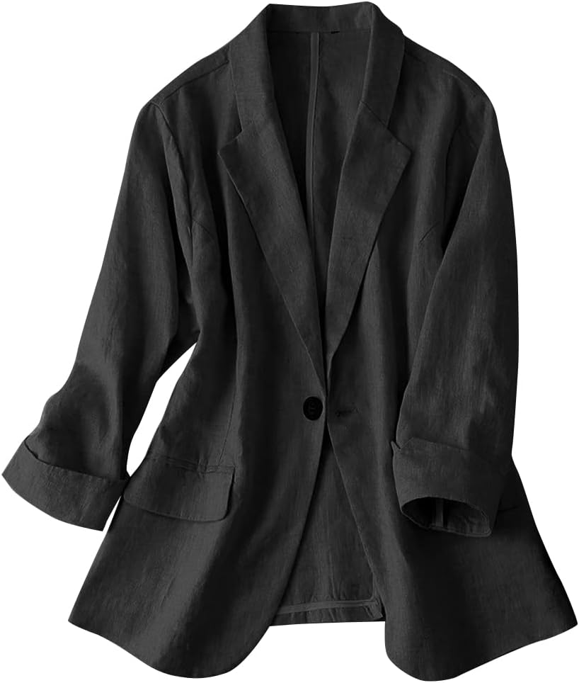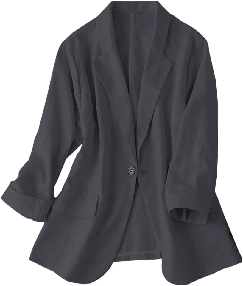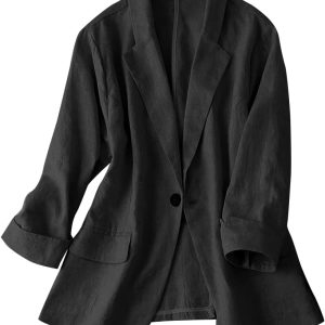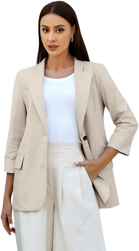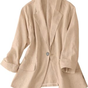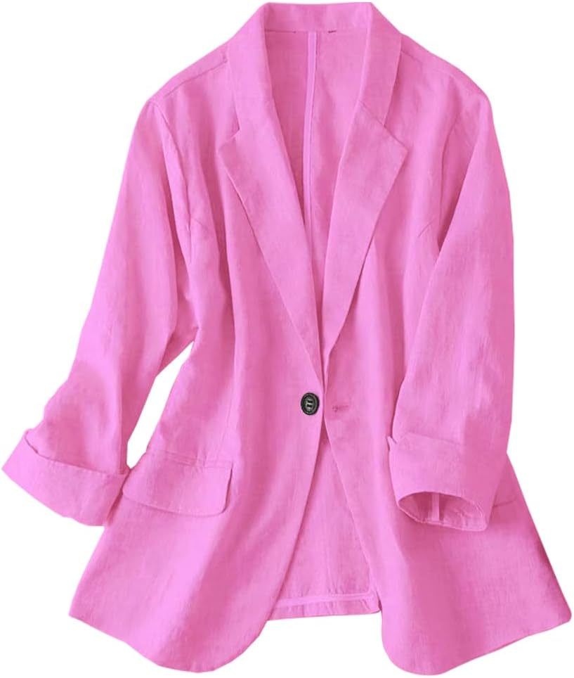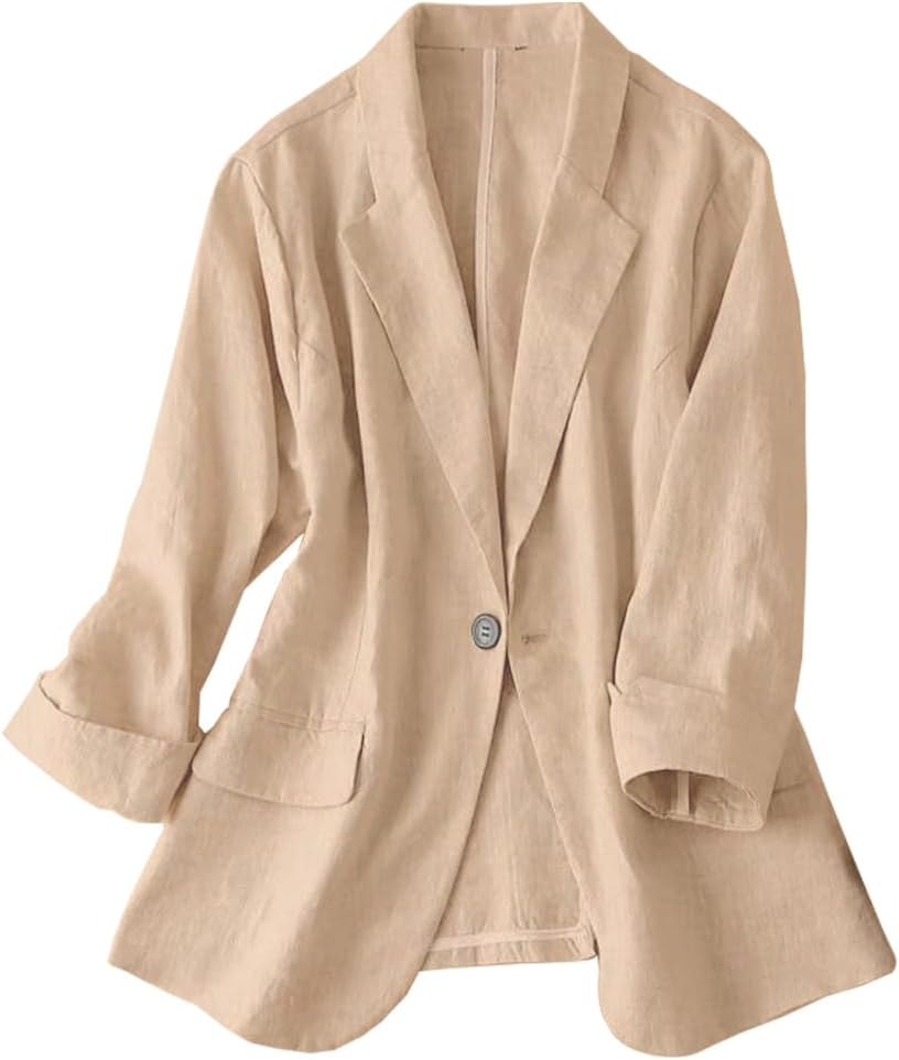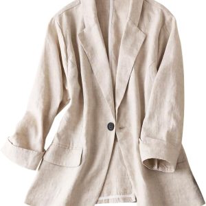 Womens Linen Blazer Notch Lapel One Button Suit Coat Jackets