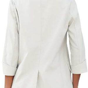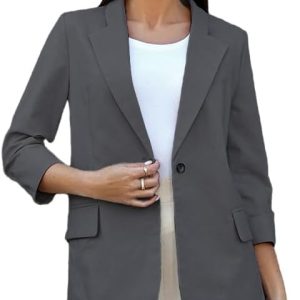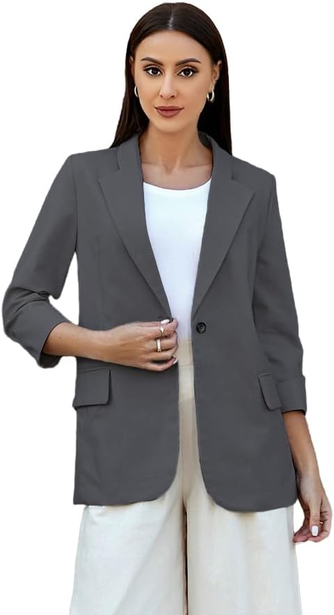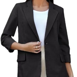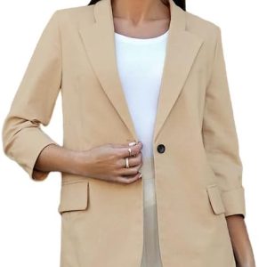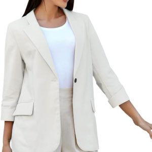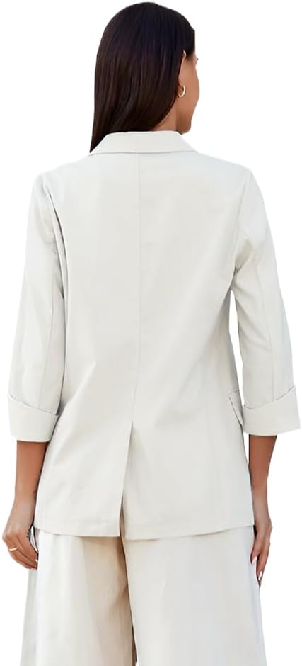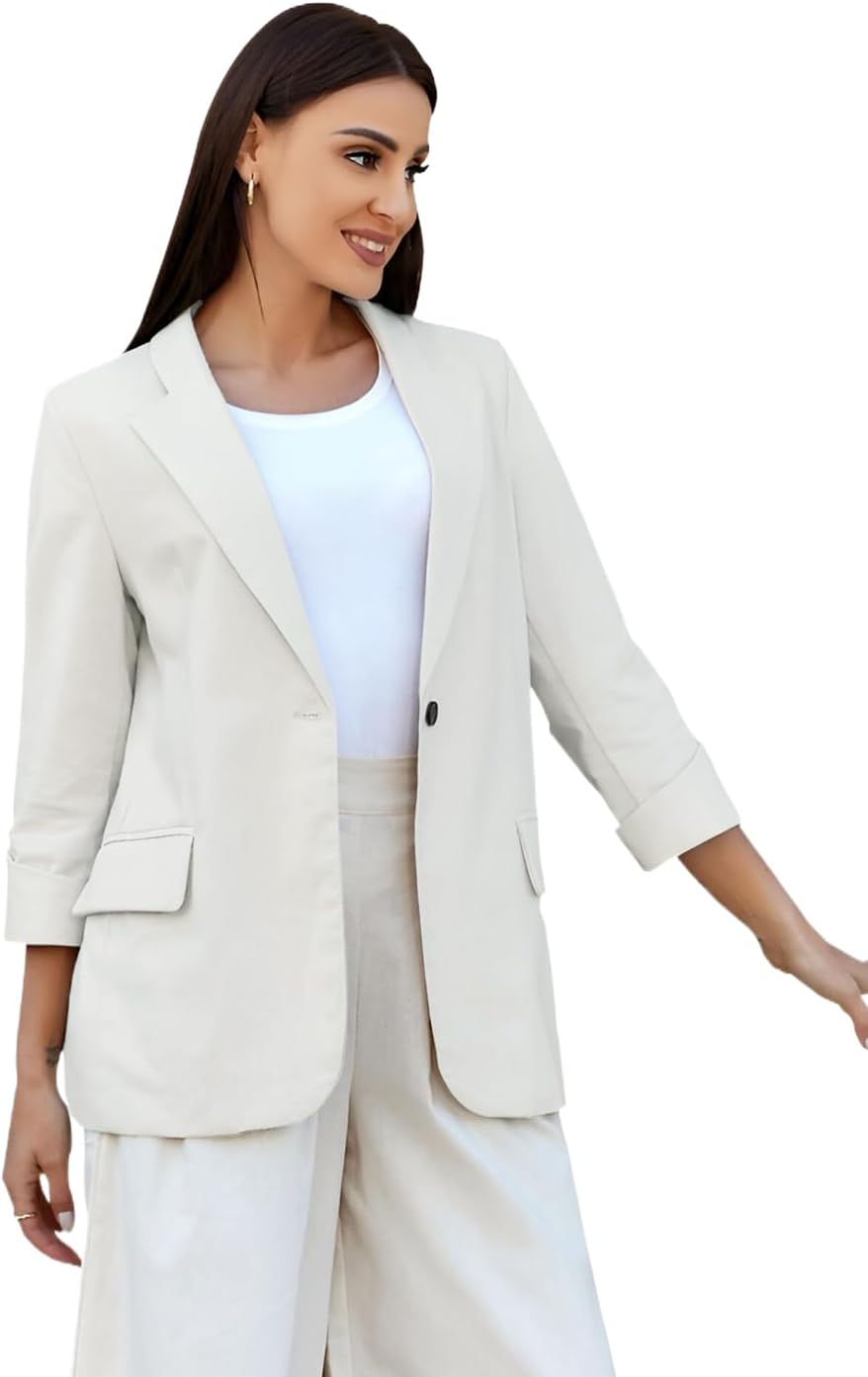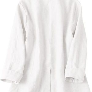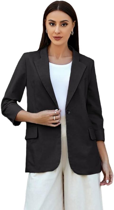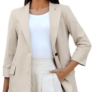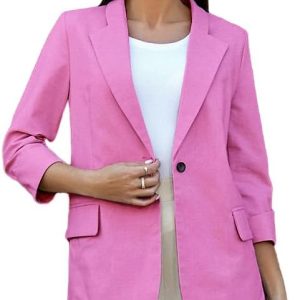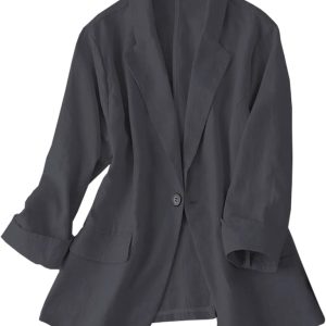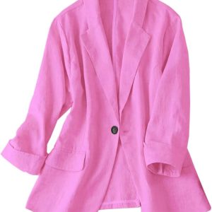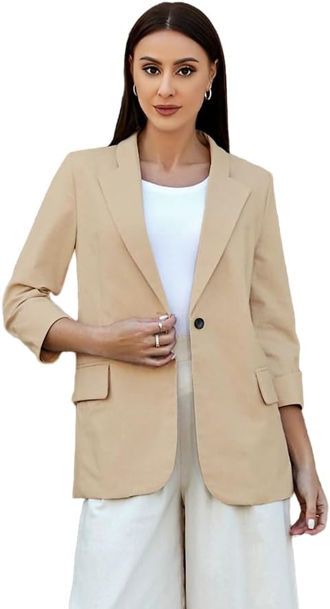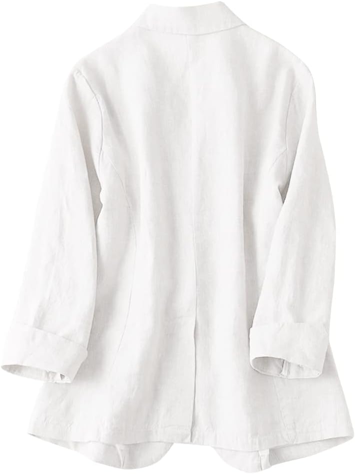 Womens Linen Blazer Notch Lapel One Button Suit Coat Jackets