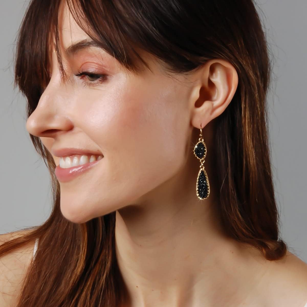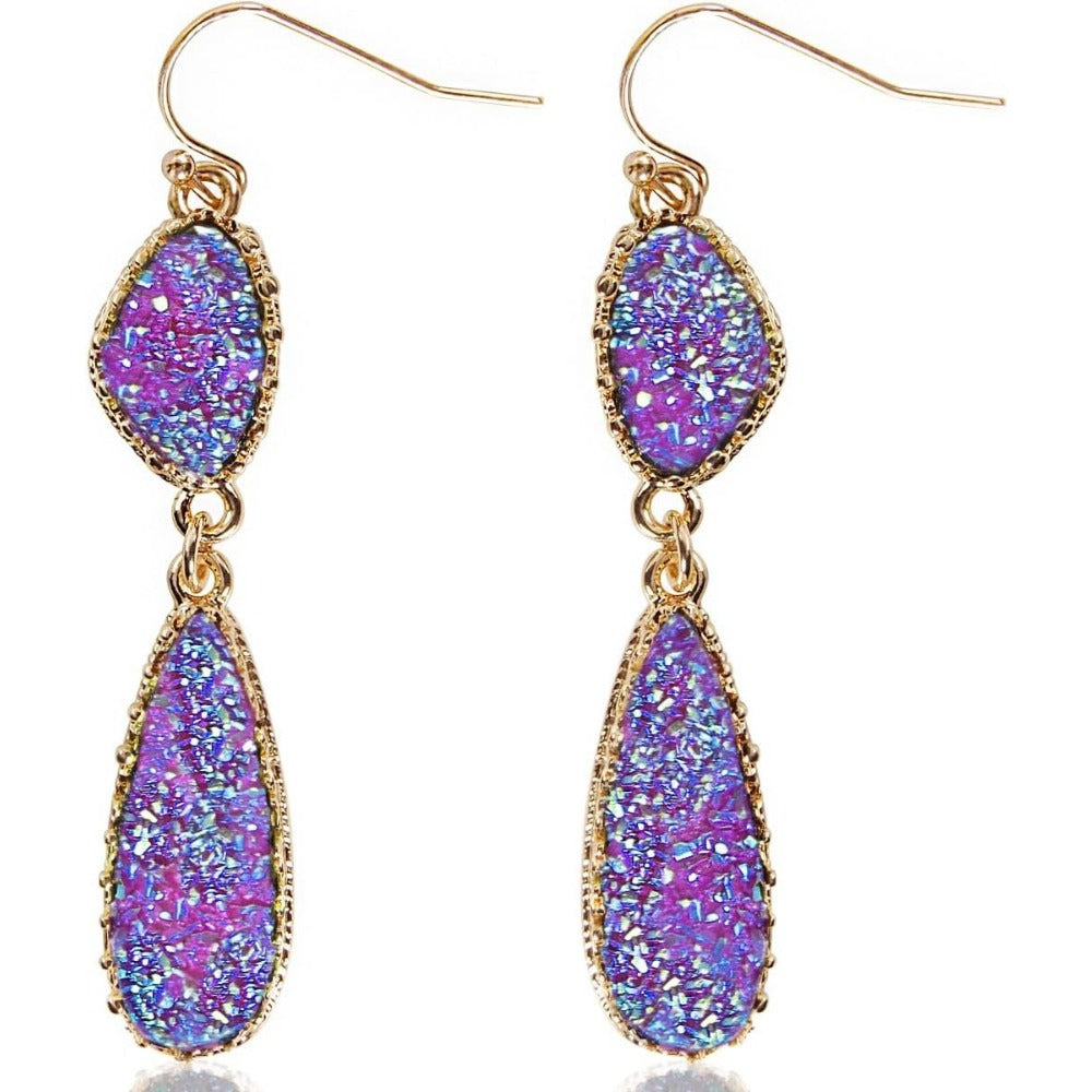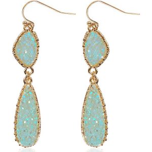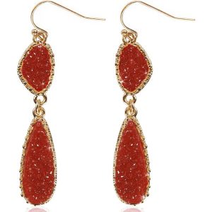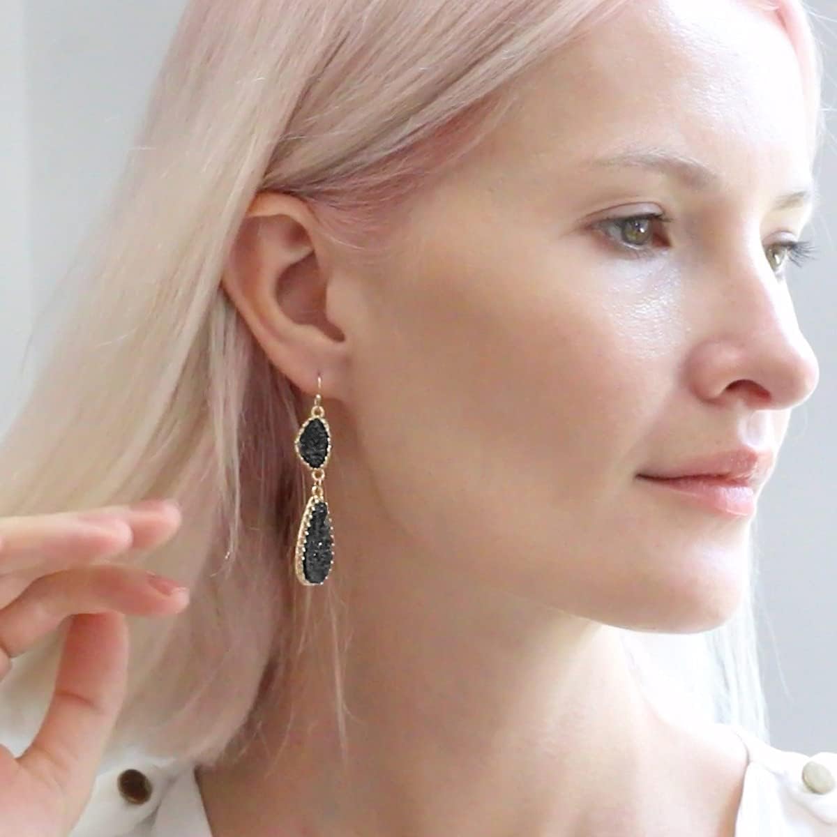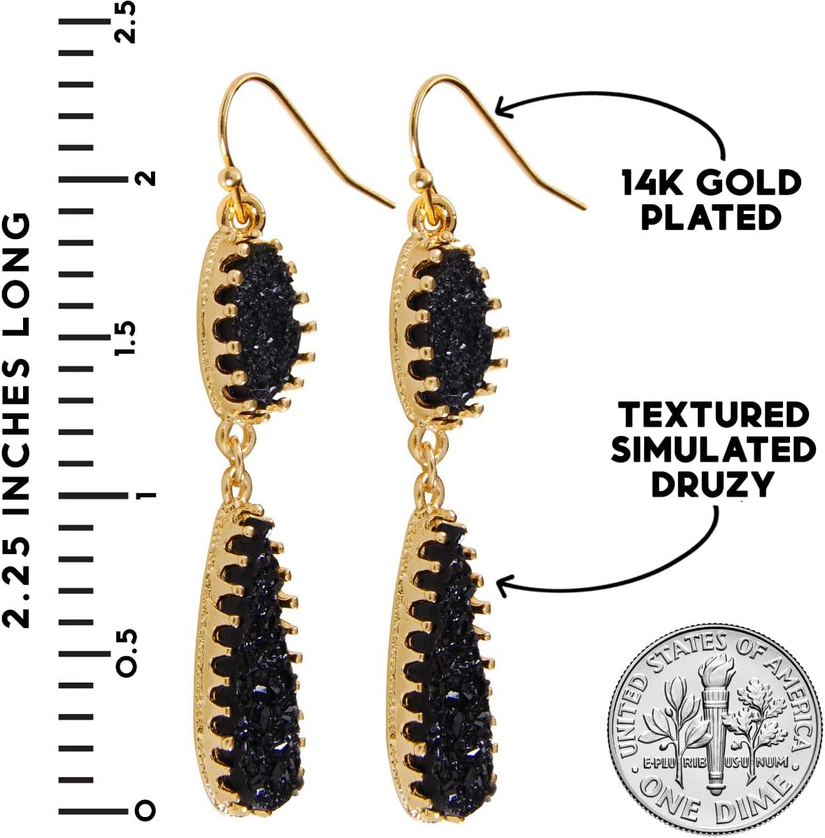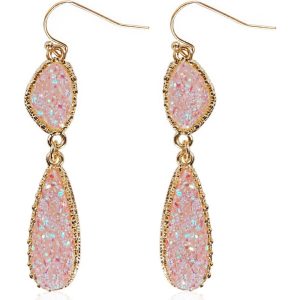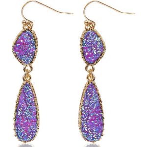 STYLISH DESIGN – These light-filled chandelier earrings feature two shimmering dangling geodes. The shimmering geodes have a textured cluster appearance and each one is unique.