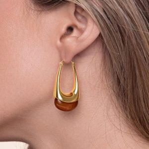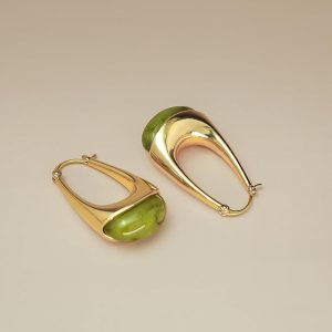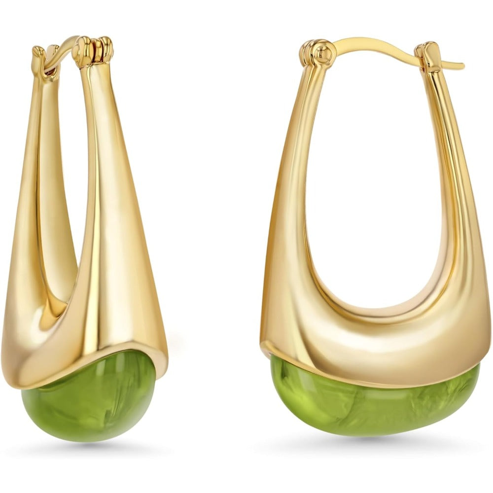 Women’s Long Oval Chunky Pendant Gold Hoop with Resin Gemstone Earrings, Exaggerated Irregular Fashion Gift, Round Vintage Thick Round Nickel Free Earrings.