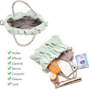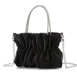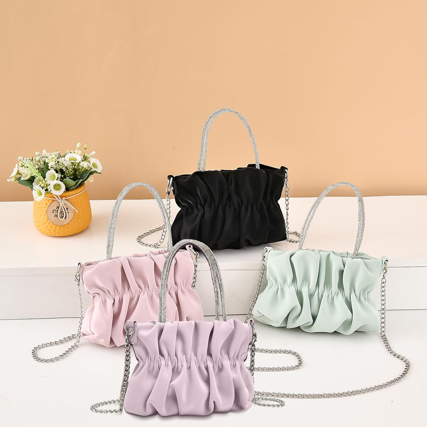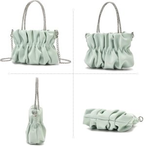 Women’s Pleated Clutch Bags Evening Handbags Suitable for Party Soft Vegan Leather Shoulder Bags Chain Crossbody Bags