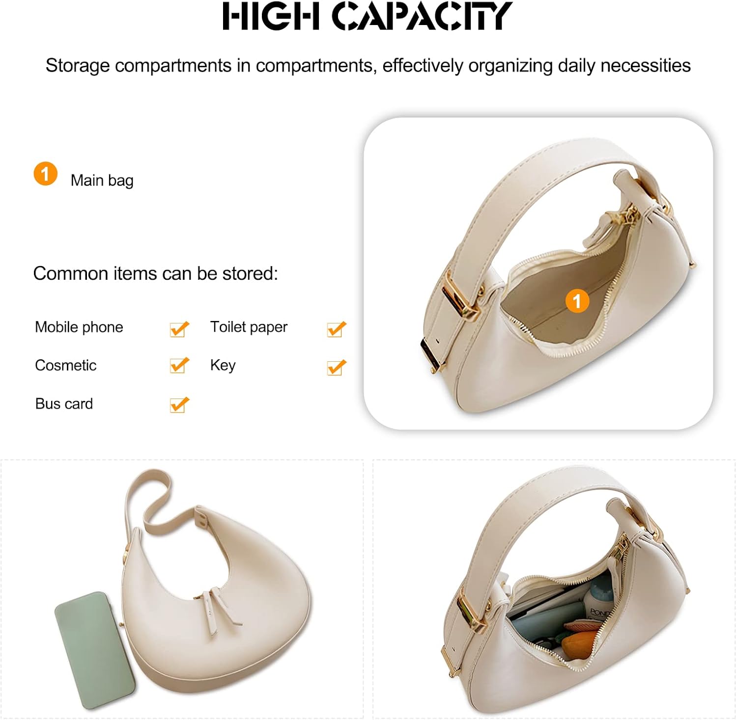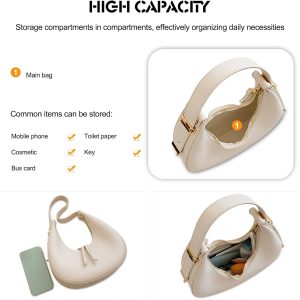 【Elegant & Versatile】 The crescent bag has a delicate texture. The corner treatment is smooth and clean. This kind of bag is simple and generous, which is deeply loved by many girls. Suitable for work, daily life, parties, travel and other occasions.