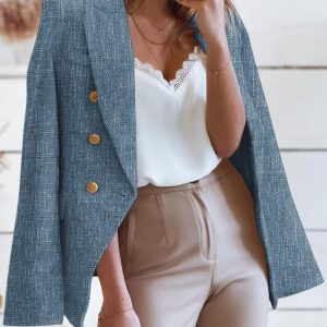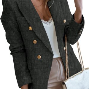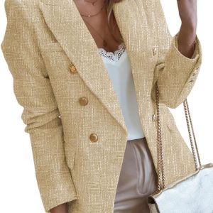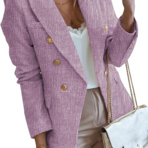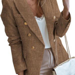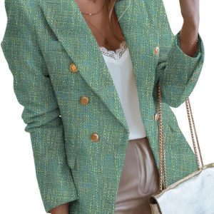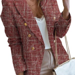 Womens Tweed Blazers Casual Long Sleeve Double Breasted Open Front Blazer Jackets Work Suits