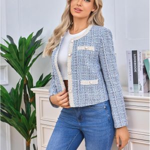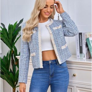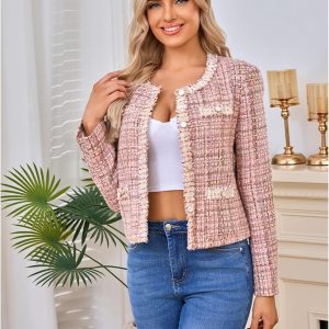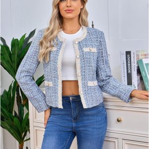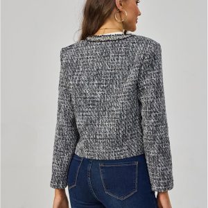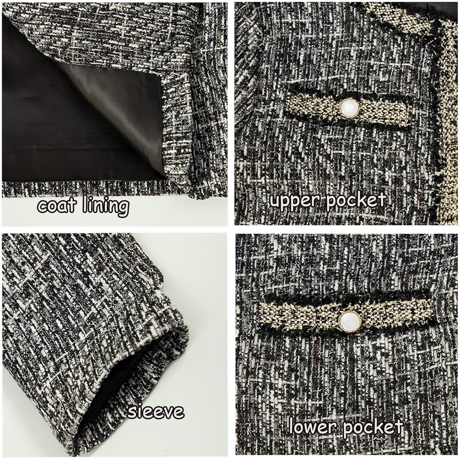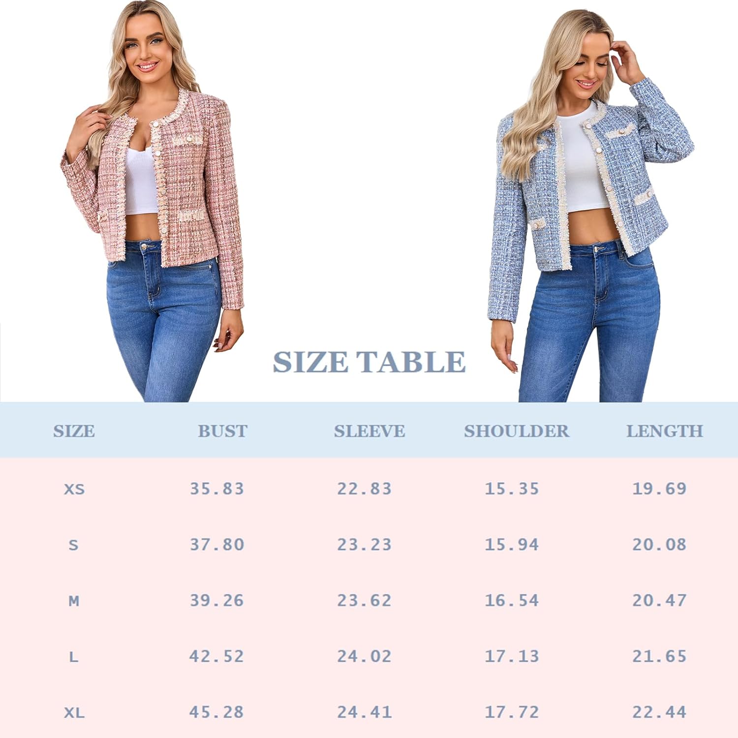 Tweed Blazer Jackets for Women Long Sleeve Elegant Office Work Business Casual Cropped Tweed Jacket