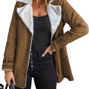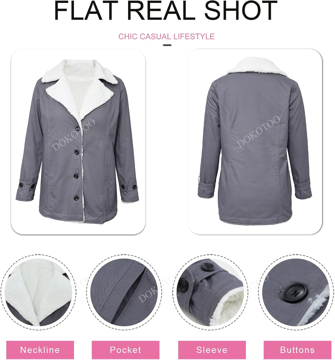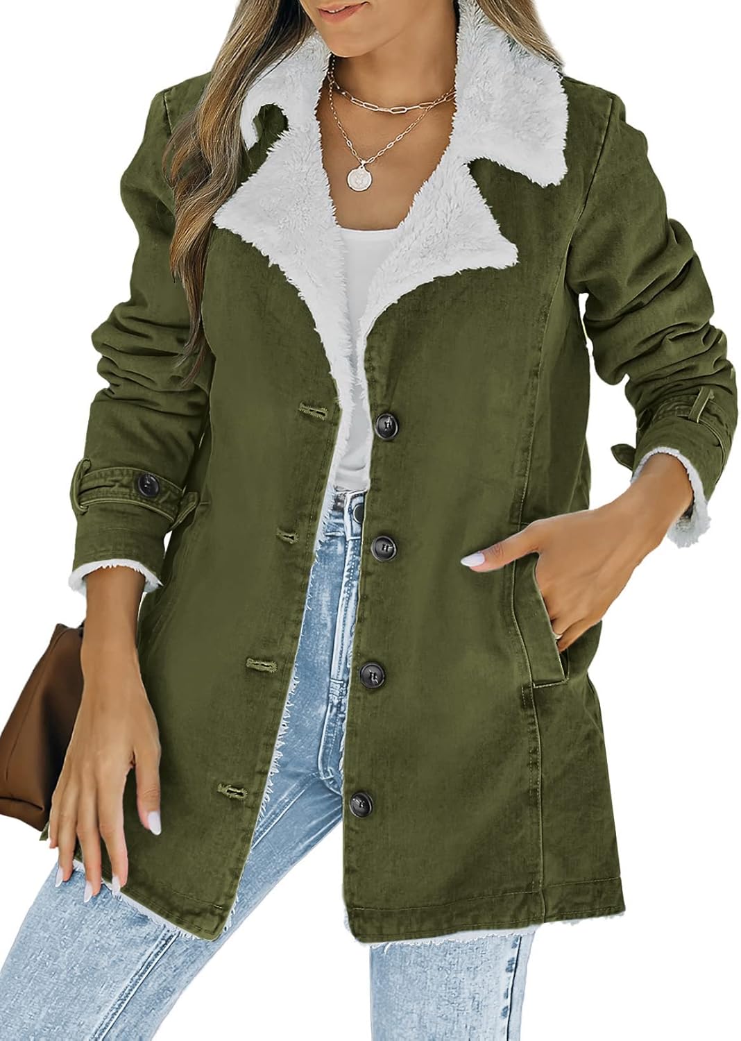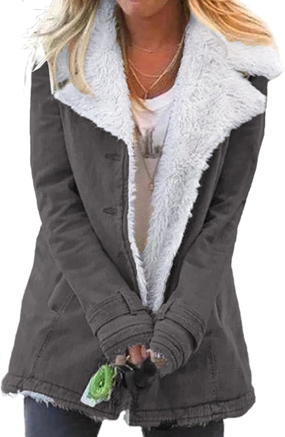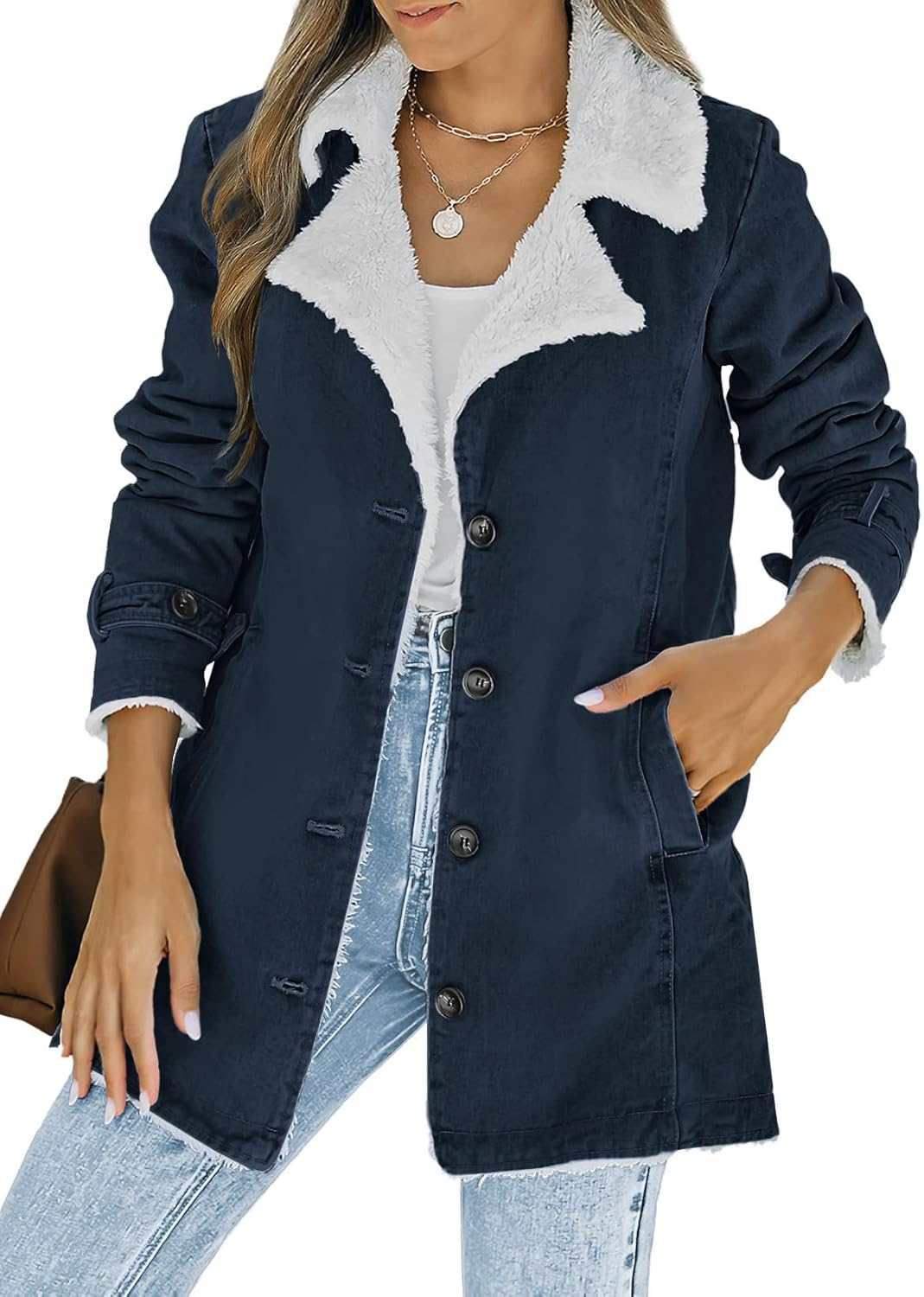 Womens Winter Warm Jean Jacket Stand Collar Wool Liner Sherpa Denim Coats Thicker Outerwear with Pockets